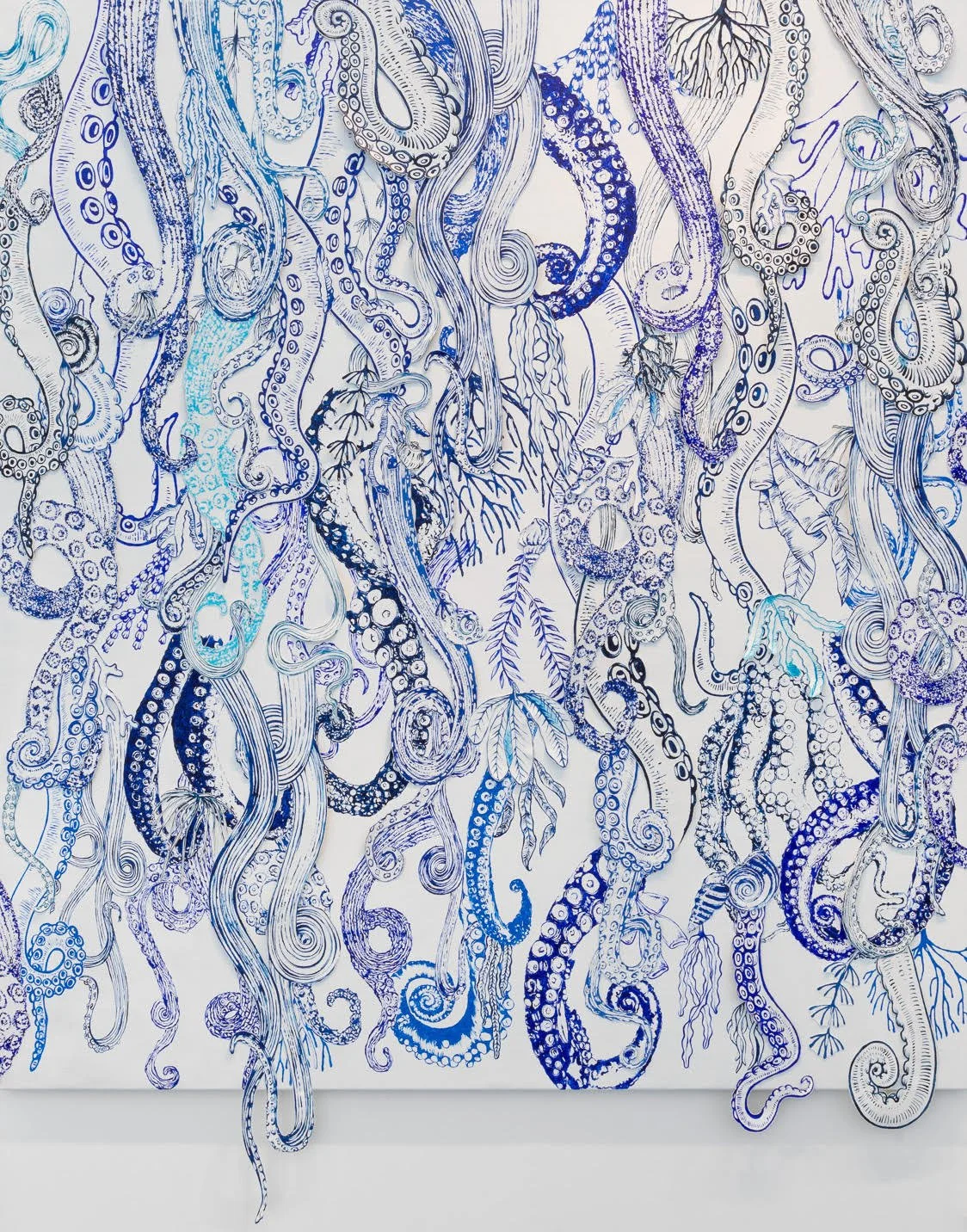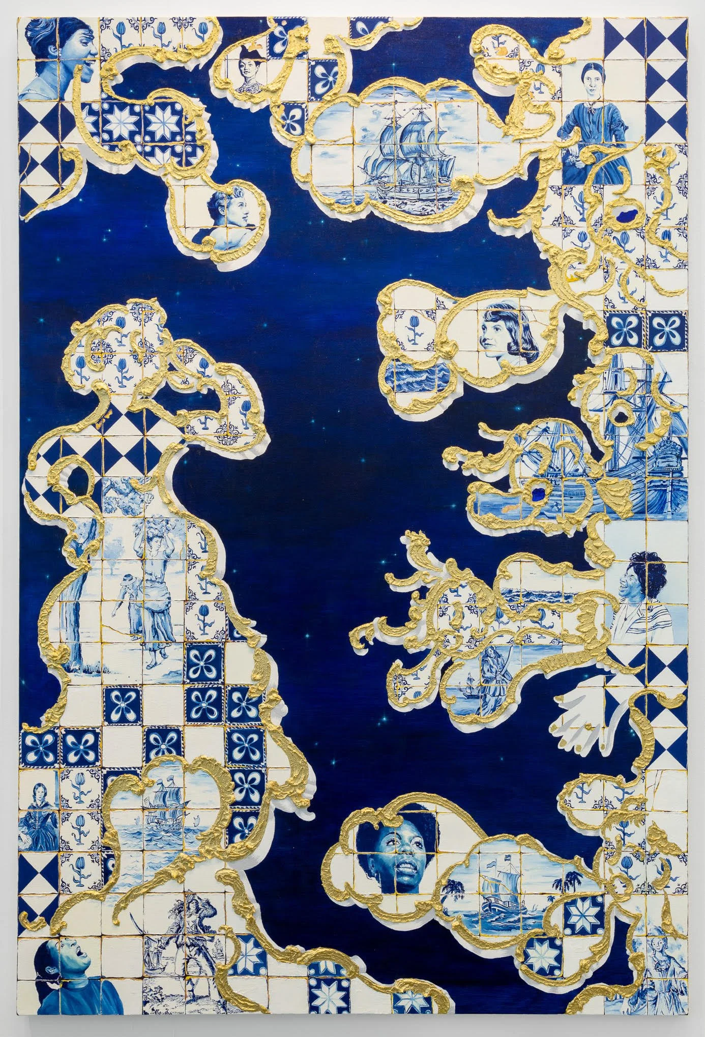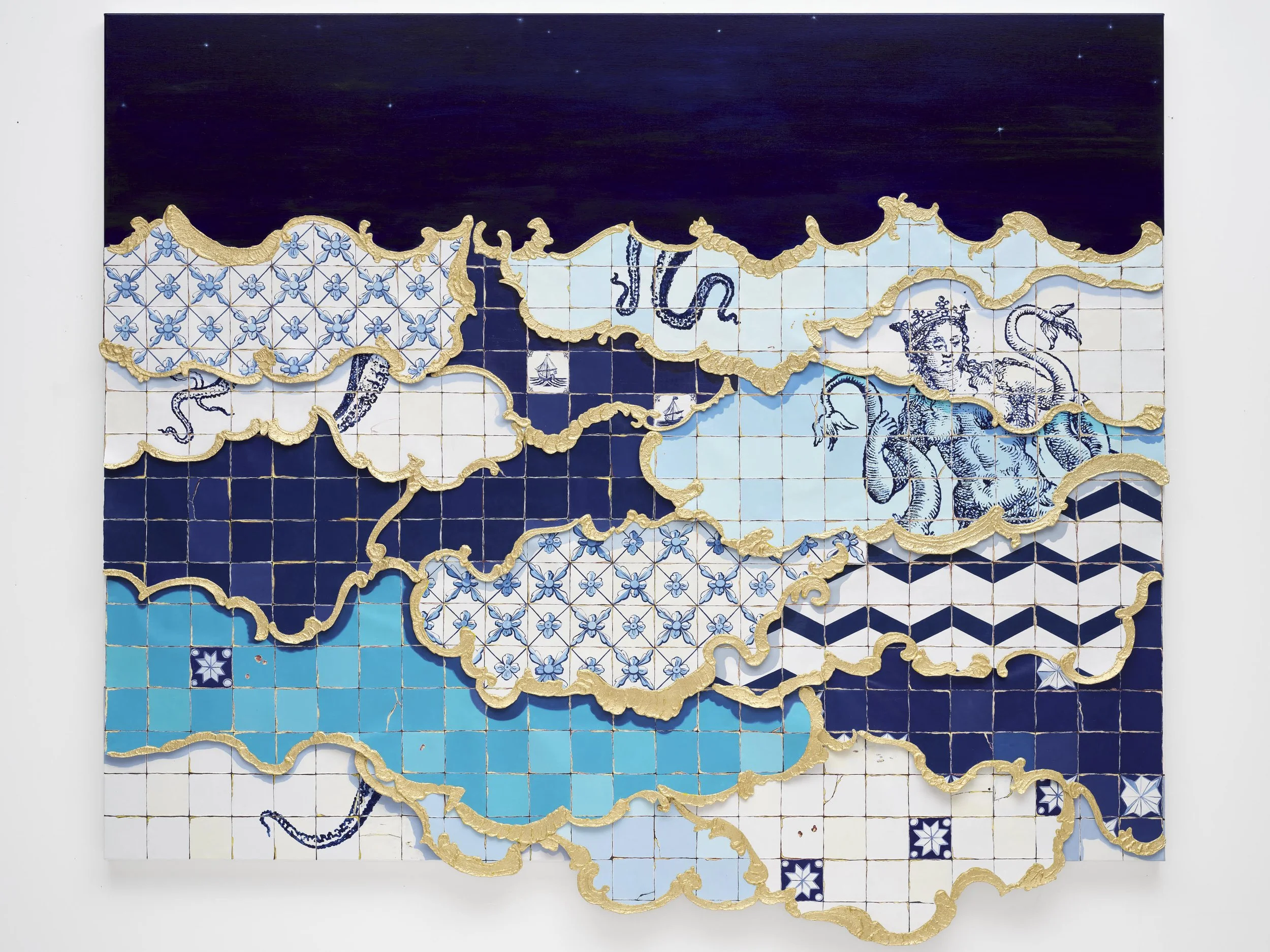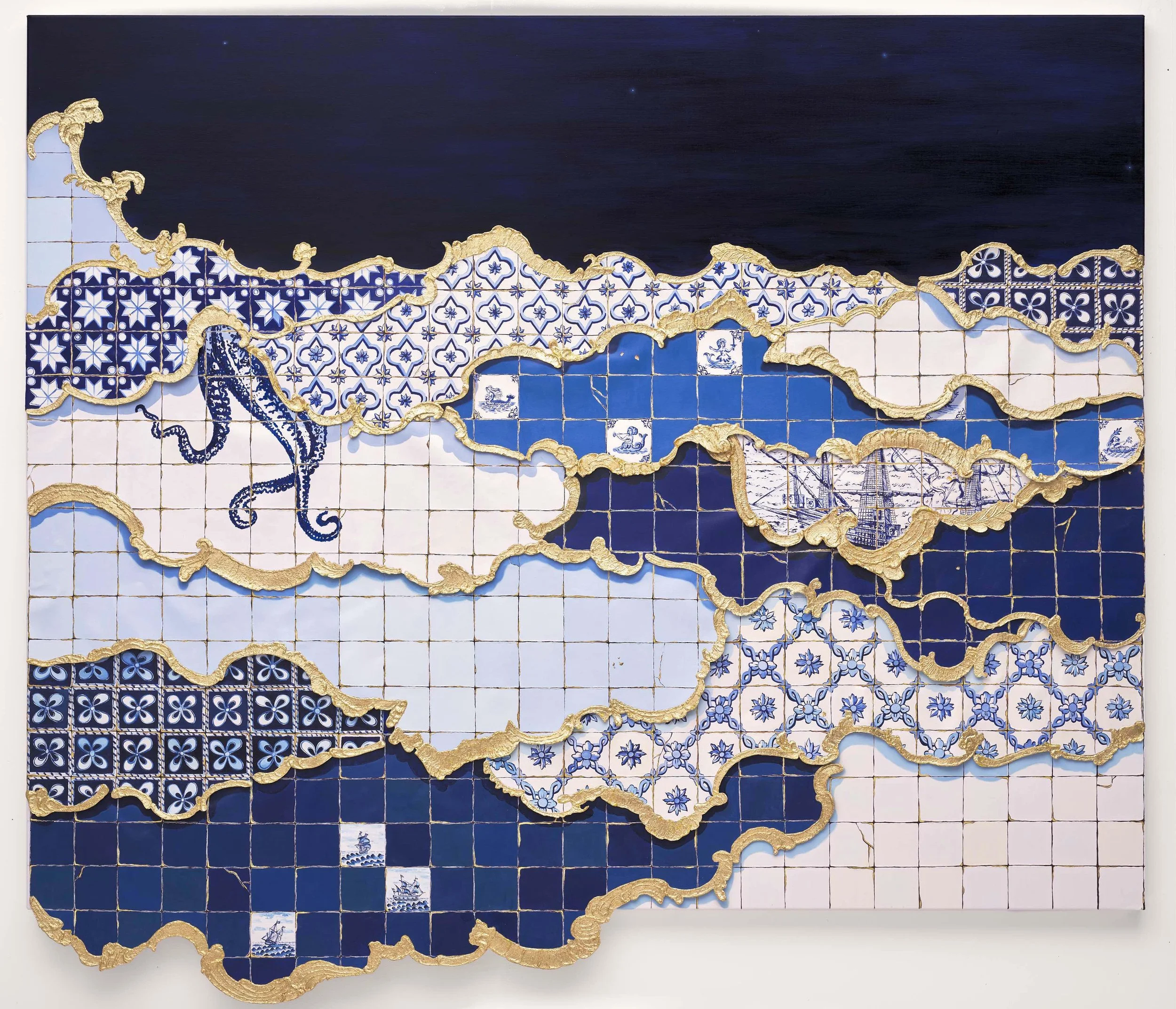Marine II, 2024, mixed media and gold leaf on linen, 160 x 176 cm